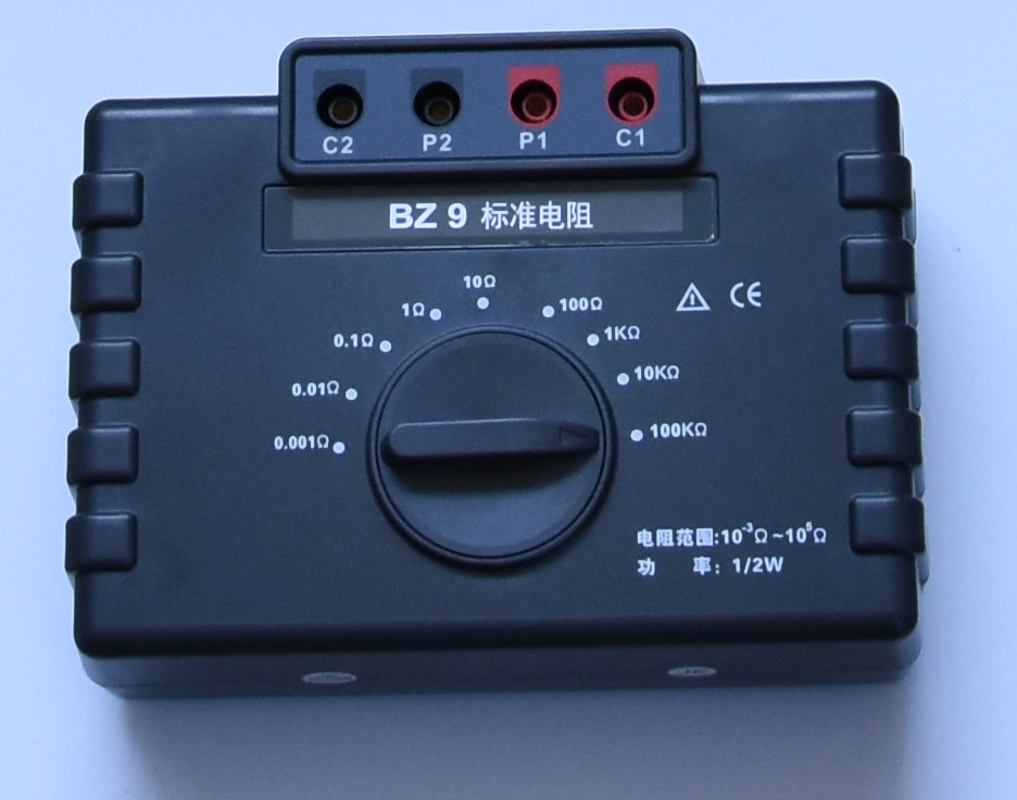 标准电阻BZ9 由9 个1/2W高精度军工级线绕电阻系列组成四线制标准电阻,直接换档不需换线,携带方便代替传统的BZ3等单个电阻携带不方便切换不同电阻的问题,最高精度达0.05%,为我司特别定制的标准电阻,其阻值包含1mΩ,10mΩ, 100mΩ,1Ω,10Ω,100Ω,1KΩ,10KΩ, 100KΩ,完全满足31 号令《雷电防护装置检测资质管理办法》中规定的10-3~105 范围。主要用于接地电阻测试仪,等电位测试仪等仪器的校准。