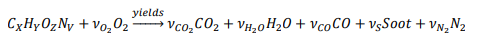 我们将假定按照FDS用户手册(第12章)中所述的化学计量简单化学反应。此一般关系由下式给出: