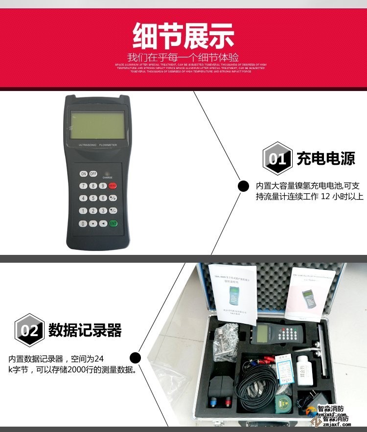 手持式超声波流量计。其测量管径在0-700mm,精度±1%。