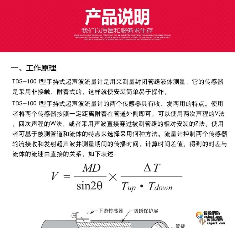 超声波在流动的流体中传播时就载上流体流速的信息。因此通过接收到的超声波就可以检测出流体的流速,从而换算成流量,图1。