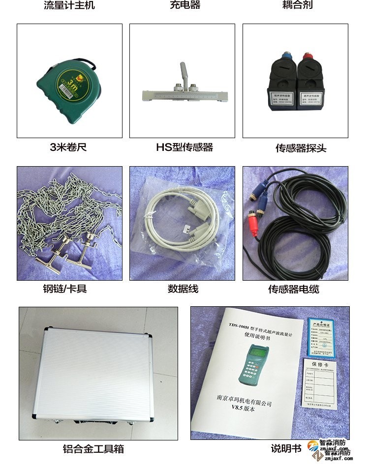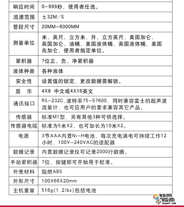 超声波流量计测量管径范围:15mm~300mm,精度: